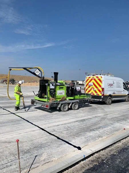 The overall project involved the design and construction of 2km of permanent access roads/walkways and 6 hectares of heavy-duty hardstandings, comprising 470mm thick CBGM pavement and brick pavers.